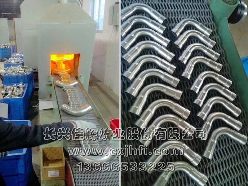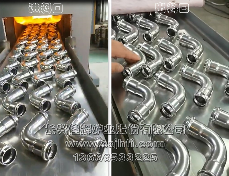 不銹鋼管件光亮退火爐 此設(shè)備可根據(jù)用戶(hù)要求進(jìn)行定制、定做,服務(wù)熱線(xiàn):13666533225 RST型不銹鋼管件光亮退火爐,適用于不銹鋼三通、彎頭、波紋管、長(zhǎng)直管等管件及其他不銹鋼管件、拉伸件、零部件等在可控氣氛(氫氮混合氣體)保護(hù)下,進(jìn)行光亮固溶、去應(yīng)力退火、消磁等熱處理工藝的專(zhuān)用設(shè)備。 金屬及奧氏體產(chǎn)品在彎曲、拉伸、鍛壓、切削、鑄造、焊接等加工 不銹鋼產(chǎn)品退火溫度:950~1080℃,在此溫度下為防止產(chǎn)品與空氣接觸產(chǎn)生氧化(變黑),我公司采用氫氮混合氣體進(jìn)行保護(hù),保證產(chǎn)品進(jìn)爐前和出爐后的顏色及光澤度一致。 產(chǎn)品退火處理后,表面光亮無(wú)氧化,內(nèi)應(yīng)力消除,便于后期的繼續(xù)拉伸或成品出貨。本設(shè)備取代傳統(tǒng)的退火處理(傳統(tǒng)的高頻退火處理后,產(chǎn)品表面氧化成黑色,需進(jìn)行后序的酸洗處理,污染環(huán)境),本生產(chǎn)線(xiàn)大大提高了生產(chǎn)效率,降低勞動(dòng)強(qiáng)度及成本,改善工人的勞動(dòng)環(huán)境,達(dá)到高效、節(jié)能、環(huán)保的要求。 該生產(chǎn)線(xiàn)具有控制先進(jìn)、節(jié)能顯著、維修方便等特點(diǎn),工件輸送采用耐高溫金屬鋼帶或網(wǎng)帶變頻調(diào)速,全線(xiàn)加熱區(qū)均采用PID自動(dòng)多區(qū)控溫。
